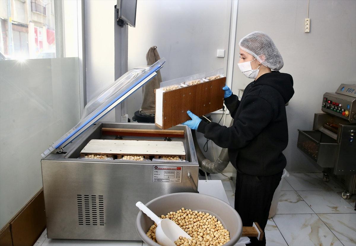 Kadın girişimci Ezgi Duman İmamoğlu, kurduğu atölyede fındığı işleyip pazarlıyor.